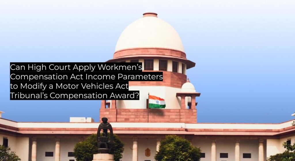 - The Supreme Court reaffirms that once a Tribunal under Section 166 M.V. Act fixes monthly income, a High Court cannot fallback on Workmen’s Compensation Act limits.