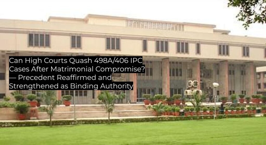 Delhi High Court confirms that criminal proceedings under Sections 498A/406/34 IPC can be quashed when matrimonial disputes have been amicably settled between the parties. This judgment reaffirms settled precedent, carries binding authority for subordinate courts in Delhi, and guides matrimonial practitioners across the jurisdiction.