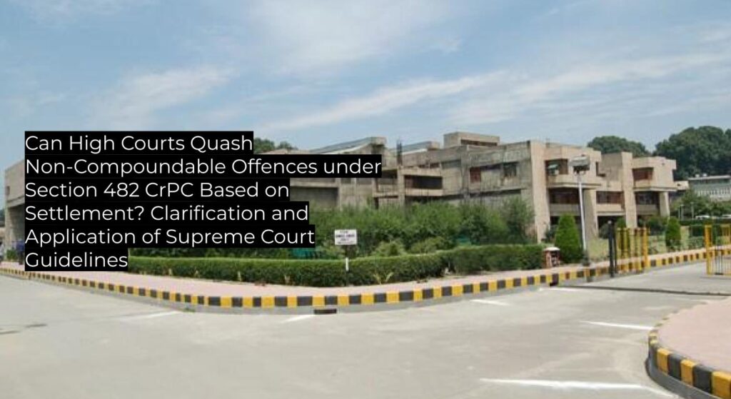 High Court clarifies and affirms, following Supreme Court precedent, that inherent powers under Section 482 CrPC may be exercised to quash even non-compoundable offences on the basis of a settlement, except in cases of heinous crimes or offences affecting society at large. The judgment upholds existing precedent and serves as binding authority for subordinate courts in criminal matters involving settlement.