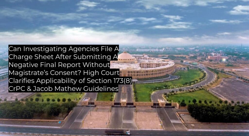 Can Investigating Agencies File A Charge Sheet After Submitting A Negative Final Report Without Magistrate’s Consent? High Court Clarifies Applicability of Section 173(8) CrPC & Jacob Mathew Guidelines