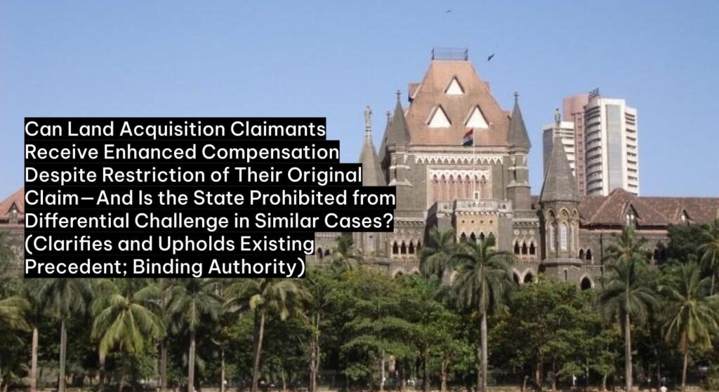 The Bombay High Court holds that claimants are entitled to the full compensation to which they are legally entitled, even if their original claim was restricted to a lower amount—subject to court fee payment; and the State/acquiring body cannot adopt a discriminatory “pick and choose” approach in challenging awards in similar circumstances. This judgment affirms Supreme Court precedent and is binding on subordinate courts and authorities handling land acquisition compensation disputes.