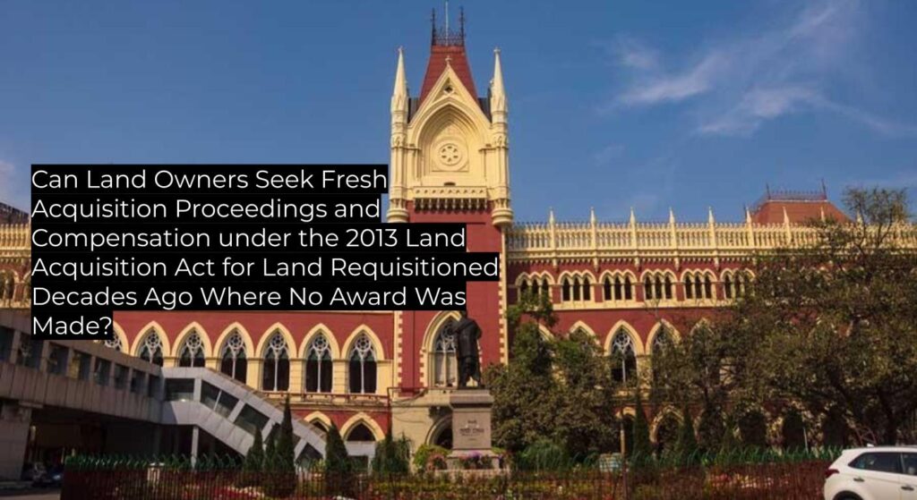 Calcutta High Court confirms that when land was requisitioned under repealed statutes but no acquisition award was made within the statutory period, the authority must initiate fresh acquisition proceedings under the 2013 Act (Act XXX of 2013) and pay just compensation and rent for the entire period of state use. Upholds and applies prior coordinate bench decision on identical facts, establishing binding authority for State authorities and Special Land Acquisition Officers within West Bengal.