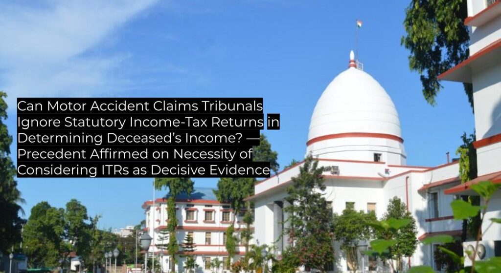 The Gauhati High Court reaffirms that Motor Accident Claims Tribunals must consider exhibited Income-Tax Returns (ITRs) in assessing the income of a deceased for compensation purposes, following Supreme Court precedent. Where evidence is ambiguous, the matter can be remanded for limited verification. This case underscores the requirement for Tribunals in motor accident matters to treat ITRs as reliable statutory documents unless proven otherwise, and constitutes binding authority for lower courts in similar compensation assessments.