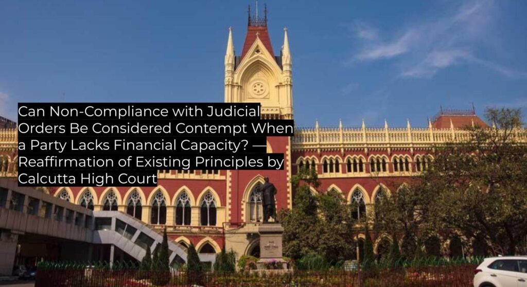 The Calcutta High Court reiterates that inability to comply with a court’s direction due to genuine financial incapacity does not amount to contempt; affirms precedent and preserves the petitioner’s right to seek modification. The decision serves as binding authority within the jurisdiction and provides instructive value on the interplay between contempt and enforceability.