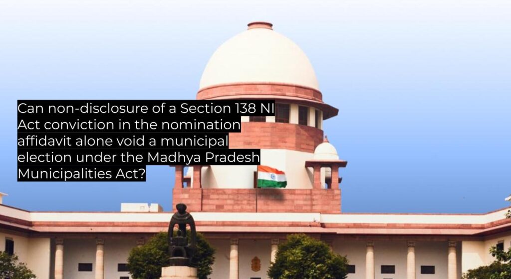 Can non-disclosure of a Section 138 NI Act conviction in the nomination affidavit alone void a municipal election under the Madhya Pradesh Municipalities Act?