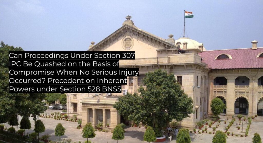 Allahabad High Court clarifies that in private disputes, even proceedings involving Section 307 IPC may be quashed on the basis of compromise if no serious or dangerous injury is found and compromise has been duly verified. The decision affirms and applies existing precedent, emphasizing discretionary use of inherent powers under Section 528 BNSS, and provides binding authority within Uttar Pradesh for future similar cases.