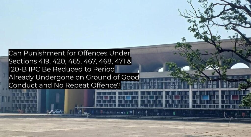 The Punjab and Haryana High Court affirms trial and appellate court convictions under serious cheating and forgery offences, but reduces sentence to period already undergone considering absence of prior or subsequent offences and demonstrated reformation. This ruling upholds existing precedent and serves as binding authority for sentencing discretion in similar cases, particularly in the absence of criminal antecedents.
