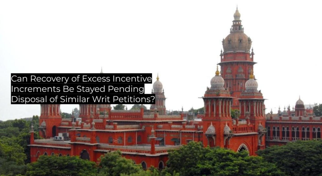 Interim Relief Affirmed in Educator Increment Recovery Dispute Madras High Court grants interim stay of administrative recovery, following its own prior orders in related petitions; persuasive for litigants seeking suspension of recoveries pending final adjudication.