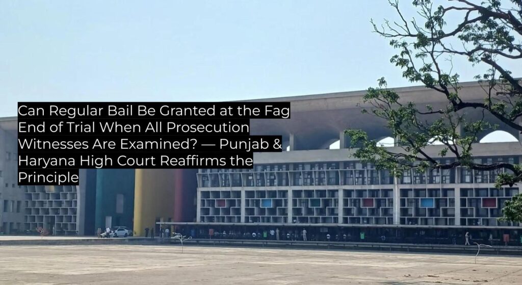 The Court held that regular bail should not be granted at the stage where the trial is nearly complete and all prosecution witnesses have been examined, reaffirming existing precedent. The judgment is a binding authority on subordinate courts in Punjab & Haryana for bail jurisprudence under the Bharatiya Nagarik Suraksha Sanhita, 2023.