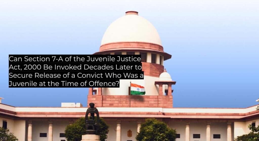 | Ratio Decidendi | The convict’s age (12 years 5 months) at the time of the offence was undisputed, negating the need for fresh inquiry under Section 7-A. That provision mandates courts to admit a juvenility plea at any stage, conduct an age-inquiry, and treat any sentence as void if the accused was a juvenile. Reliance on Pratap Singh, Dharambir and related decisions confirms that the JJ Act, 2000 applies to pending or pre-enactment cases. Excess detention beyond three years breached Article 21. Immediate release follows. |