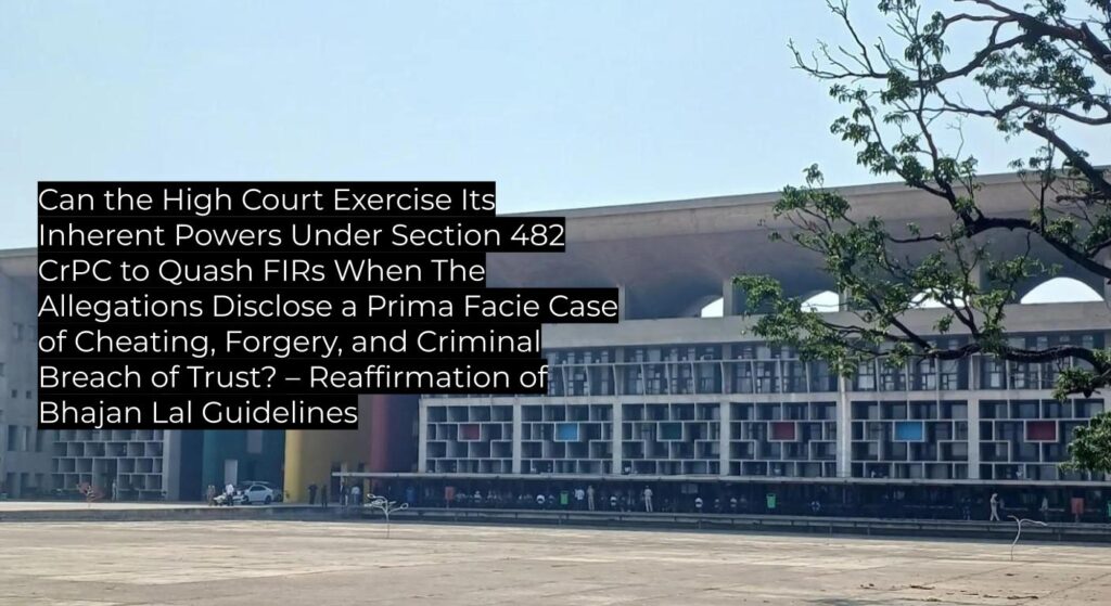 The High Court has reaffirmed that it will not quash FIRs under Section 482 CrPC when specific allegations, taken at face value, disclose a prima facie offence and do not fall within the exception categories set out in Bhajan Lal. The judgment follows and clarifies prior Supreme Court precedent, underscoring that such power must be exercised sparingly, and does not allow for a “mini trial” at the quashing stage—preserving the authority as binding precedent for criminal practice.