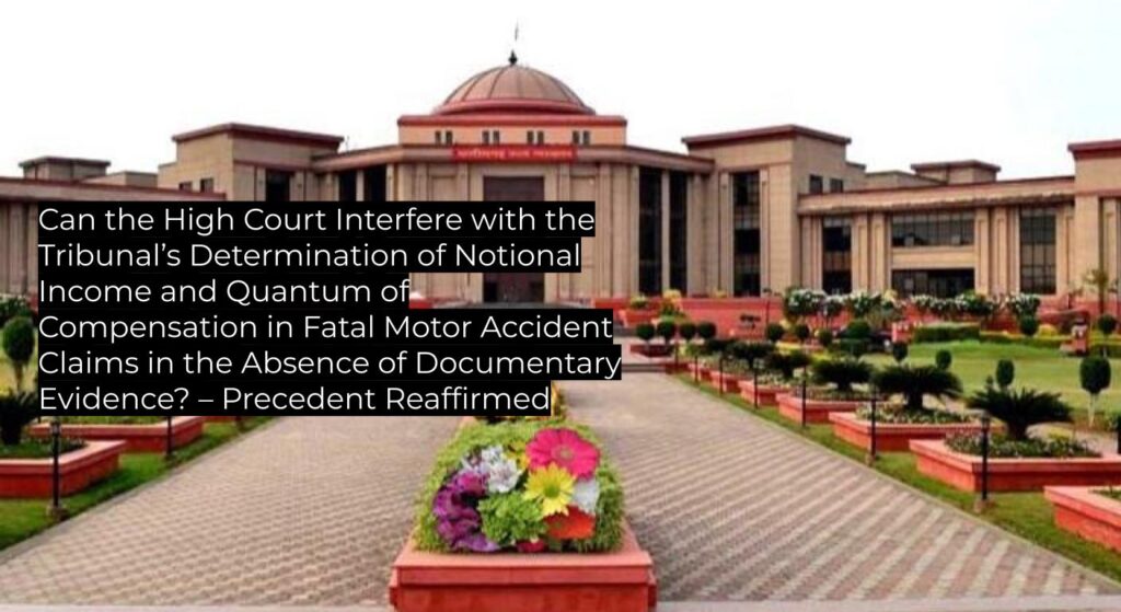 - The High Court examined whether the Motor Accident Claims Tribunal’s finding on the deceased’s notional income (Rs. 15,000/month as mason) could be interfered with on appeal.