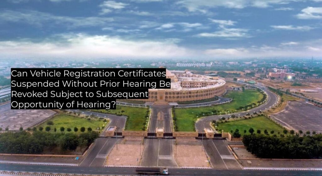 The Rajasthan High Court has clarified that when Registration Certificates (RCs) of vehicles are suspended without prior hearing, such suspension orders are to be set aside and the RCs revoked, subject to the vehicle owners being provided a post-decisional hearing within a specified timeframe. This judgment follows earlier precedent and lays down directions for uniform application, serving as binding authority within Rajasthan’s jurisdiction.