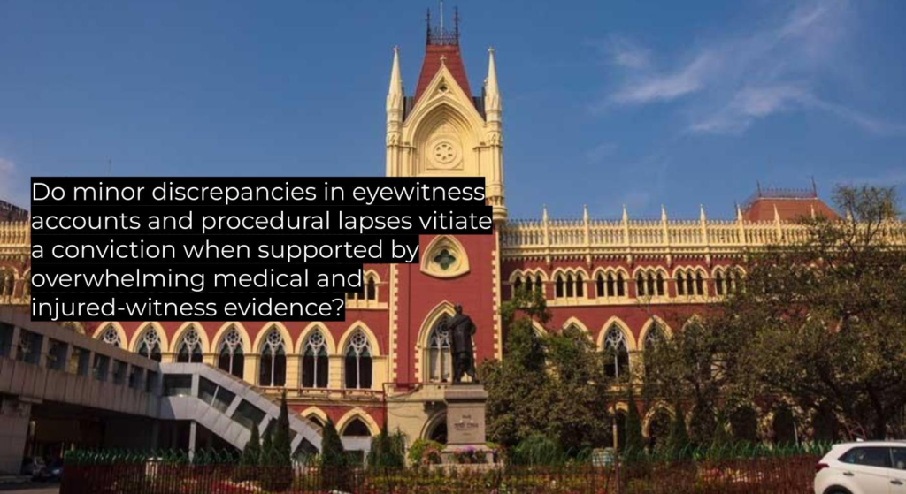 Calcutta High Court answers “No,” upholding convictions under Sections 302/326 IPC read with Section 34, acquitting one accused for lack of evidence. The judgment affirms precedents on inquest scope, normal vs material discrepancies, and injured‐witness reliability. Binding on subordinate courts; persuasive for other High Courts.