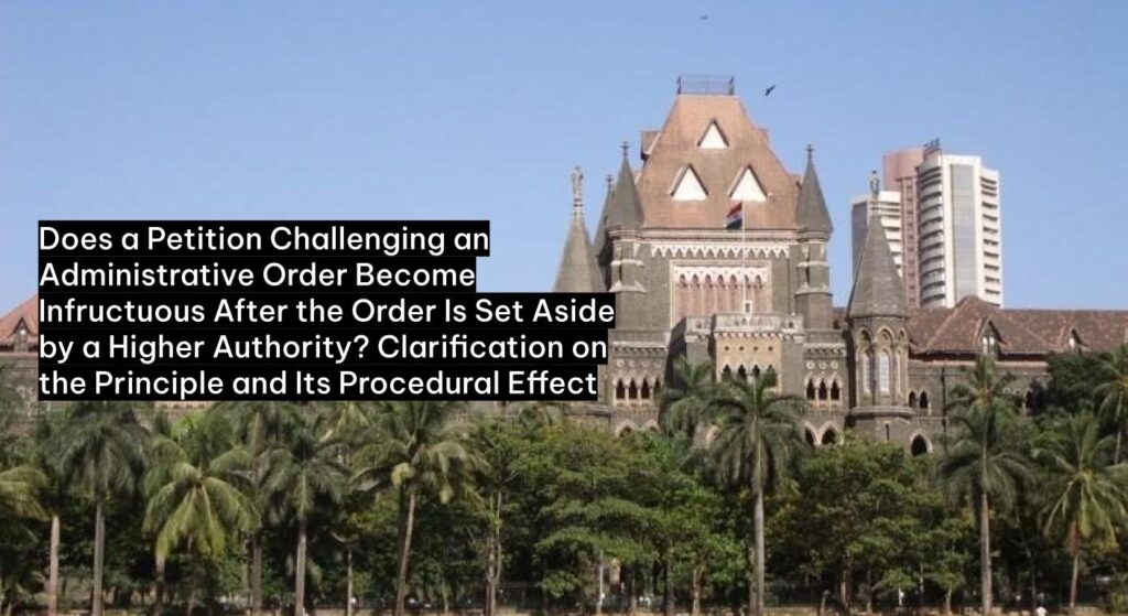 Upon a higher administrative authority setting aside the impugned order during the pendency of writ proceedings, the original writ petition becomes infructuous as the subject matter of the challenge ceases to exist. The High Court, in such circumstances, will dispose of the writ petition as having become infructuous, reaffirming the procedural approach in administrative law matters where intervening developments eliminate the dispute. |