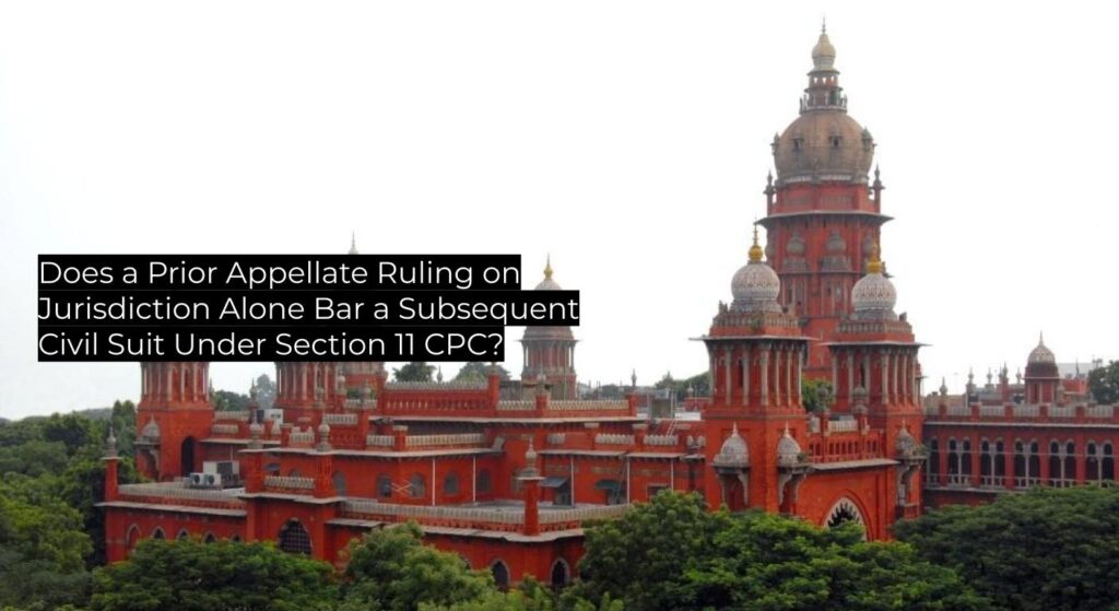 Madras High Court holds that a decision deflecting merits for lack of jurisdiction is not res judicata, reaffirms Section 11 CPC principles in property eviction and adverse-possession disputes; binding on subordinate courts, persuasive across jurisdictions.