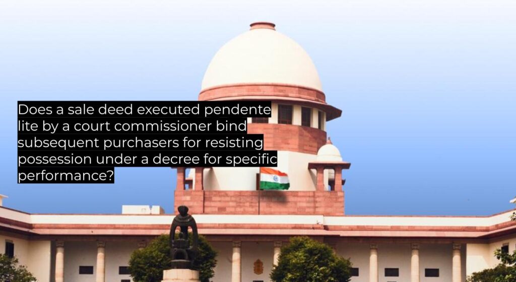 | Plaintiff sued for specific performance of a sale agreement (1973); lis pendens registered (1986); judgment debtor made pendente lite transfers (1987); suit decreed (1990) and sale deed executed by court commissioner (1993); decree holder sought possession warrant (2018) but was resisted by subsequent purchasers (2019); executing court removed obstruction (2020) and all appeals were dismissed. |
