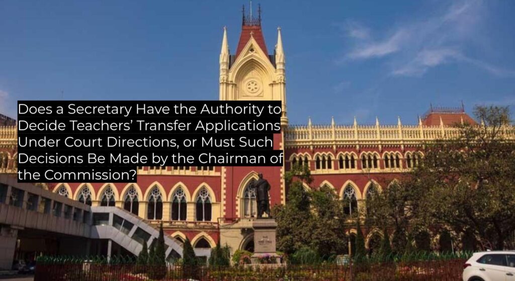 | Facts as Summarised by the Court | The petitioner challenged a memo dated 2nd April 2025 issued by the Secretary, West Bengal Central School Service Commission, rejecting his transfer application on the alleged ground of no vacancy at a particular school. The prior direction of the court in WPA 28737 of 2024 had required the Chairman—not the Secretary—to decide the application. Despite this, the Secretary rendered the decision, prompting the petitioner’s challenge. |