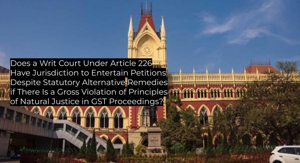 | Questions of Law | Whether writ jurisdiction under Article 226 can be invoked despite alternative remedy under GST Act where gross violation of natural justice is alleged. |