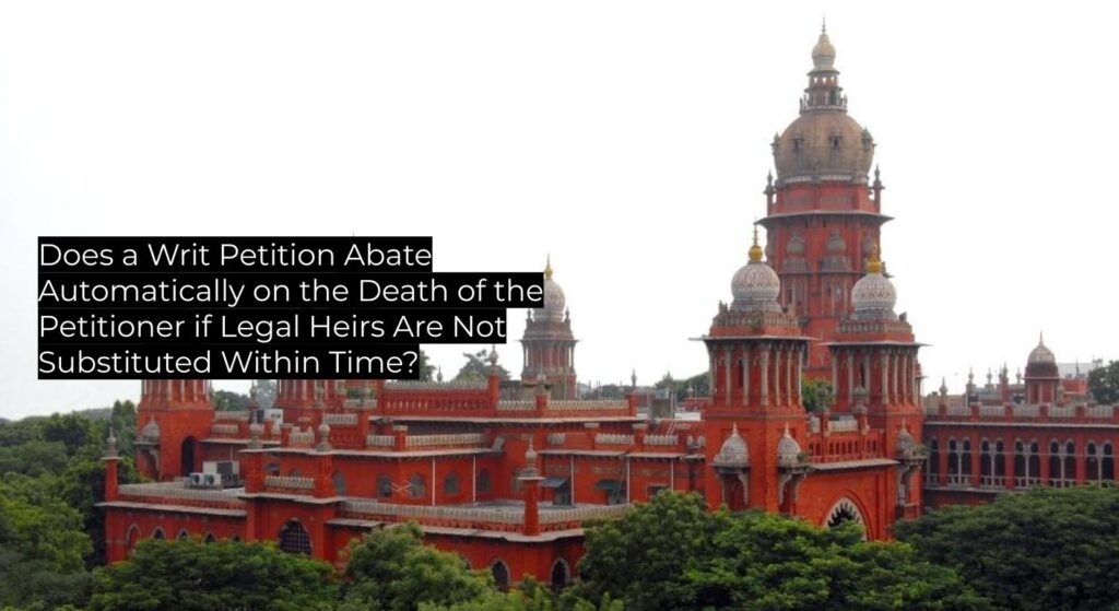 The Madras High Court reaffirmed that when a petitioner dies and steps are not taken to substitute legal heirs despite adjournments, the writ petition stands dismissed as abated. This preserves procedural discipline and is binding precedent for subordinate courts dealing with abatement in writ proceedings in Tamil Nadu and Puducherry.