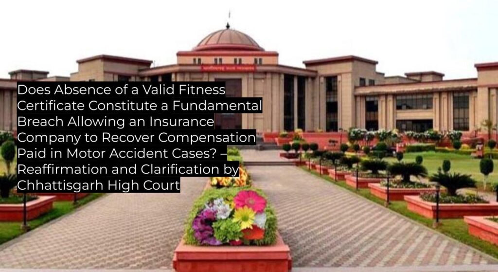 Chhattisgarh High Court holds that absence of a valid fitness certificate at the time of an accident is a fundamental breach of policy conditions, exonerating the insurer from primary liability but permits the insurer to pay the award and recover the same from the vehicle owner/driver; the judgment reaffirms existing precedent and will serve as binding authority within Chhattisgarh.
