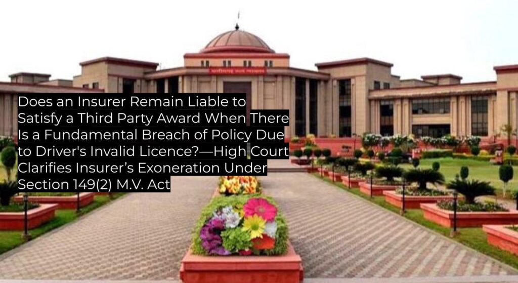 The High Court held that where the driver of the offending transport vehicle did not possess a valid and effective licence on the accident date, and the owner failed to exercise due diligence, there is a fundamental breach of the insurance policy under Section 149(2) M.V. Act. Referring to Section 15 and Supreme Court authorities, the Court concluded that the insurer is exonerated from liability and only the owner is bound to satisfy the award. The Court made clear that mere subsequent renewal of the licence does not validate its absence on the accident date. The insurer is entitled to recover any amount paid during pendency from the owner. The Supreme Court precedents on breach and third party rights were relied upon but read in light of the clear statutory default in this case. |