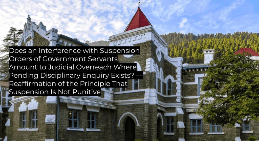 - ✔ Precedent Followed – The Court reaffirmed existing principles regarding the non-punitive nature of suspension and judicial restraint during disciplinary enquiries.
