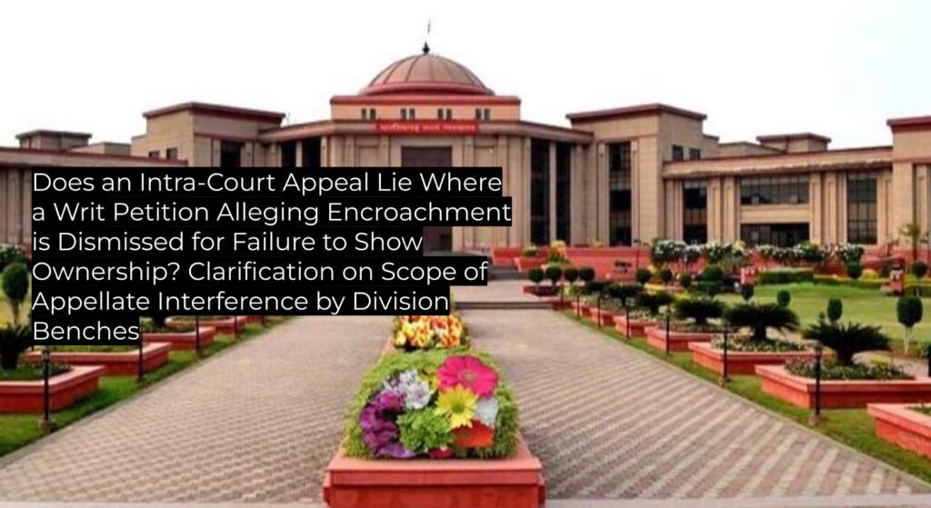 The Chhattisgarh High Court Division Bench clarifies that, when a writ petition is dismissed due to the petitioner’s admitted encroachment on government land and lack of ownership documents, the scope for interference in appeal is extremely limited. The ruling upholds existing precedent on restraining appellate courts from interfering unless the single judge’s decision reveals patent illegality, perversity, or jurisdictional error. The judgment is binding in the State of Chhattisgarh as precedent for similar intra-court appeals involving encroachment and ownership disputes.