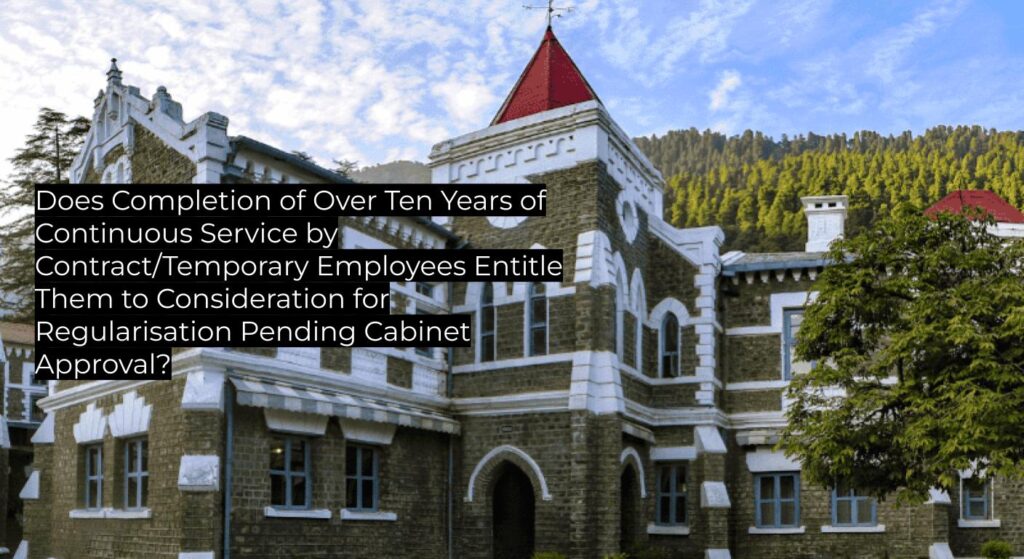 The petitioners, engaged as contractual employees against sanctioned Group ‘C’ posts in the O/o Director, Rehabilitation/District Magistrate, Tehri Garhwal, have been serving continuously for over ten years. They approached the Court seeking regularisation of their services in line with a previous judgment and for consideration of their representation. The State cited pendency of Cabinet-level decisions regarding the eligibility cut-off date for regularisation of contractual employees.