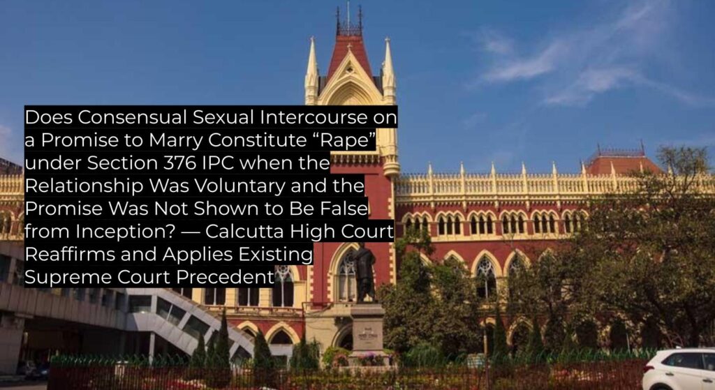 Court clarifies that a longstanding consensual relationship between adults, accompanied by a promise to marry which is not proved false ab initio, does not amount to rape under Section 376 IPC merely because the marriage did not materialise. Judgment upholds and applies the principles laid down in Uday, Deepak Gulati, Rajnish Singh, and Prashant. This is a binding precedent for subordinate courts in West Bengal and persuasive for others.