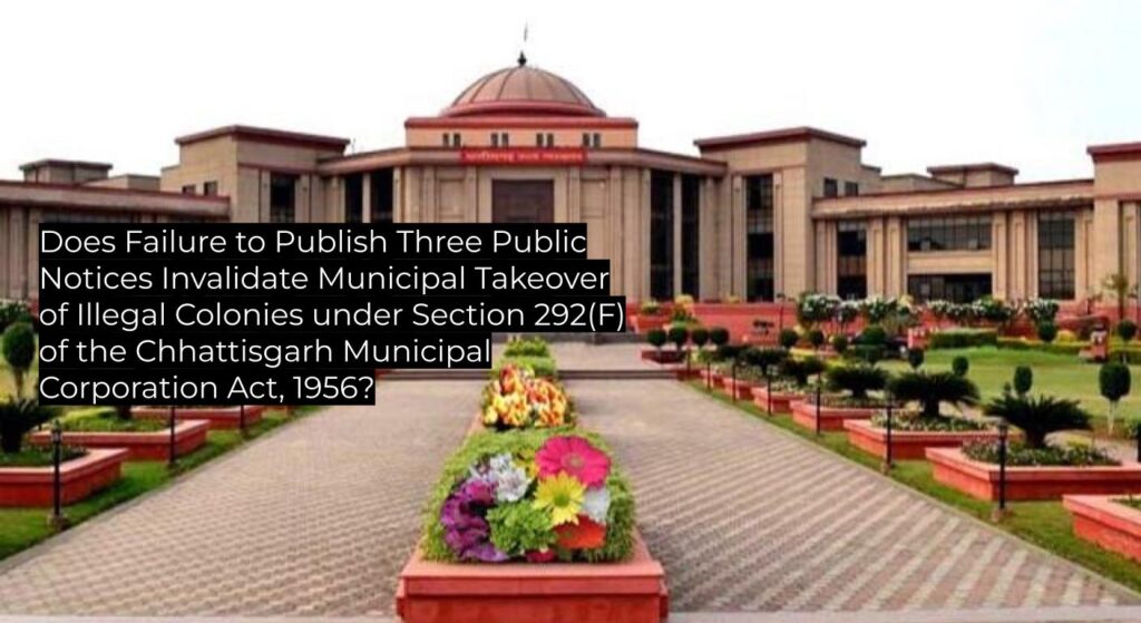 Does Failure to Publish Three Public Notices Invalidate Municipal Takeover of Illegal Colonies under Section 292(F) of the Chhattisgarh Municipal Corporation Act, 1956?