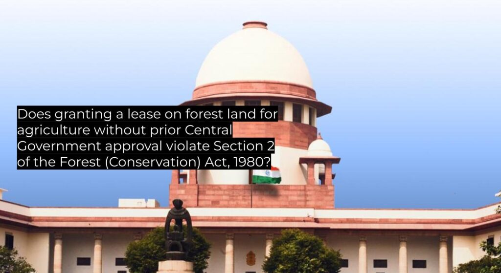 | Questions of Law | Whether a lease of forest land for agricultural (non-forest) purposes without prior approval of the Central Government is void under Section 2 of the Forest (Conservation) Act, 1980. |