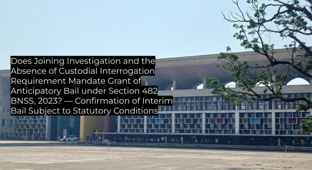 The High Court of Punjab and Haryana holds that interim anticipatory bail, once granted on the petitioner’s joining of investigation and a statement of the State that custodial interrogation is not required, can be made absolute subject to compliance with Section 482(2) of BNSS, 2023. The judgment applies existing principles to a new statutory context (BNSS, 2023) and clarifies the non-blanket scope of such orders.