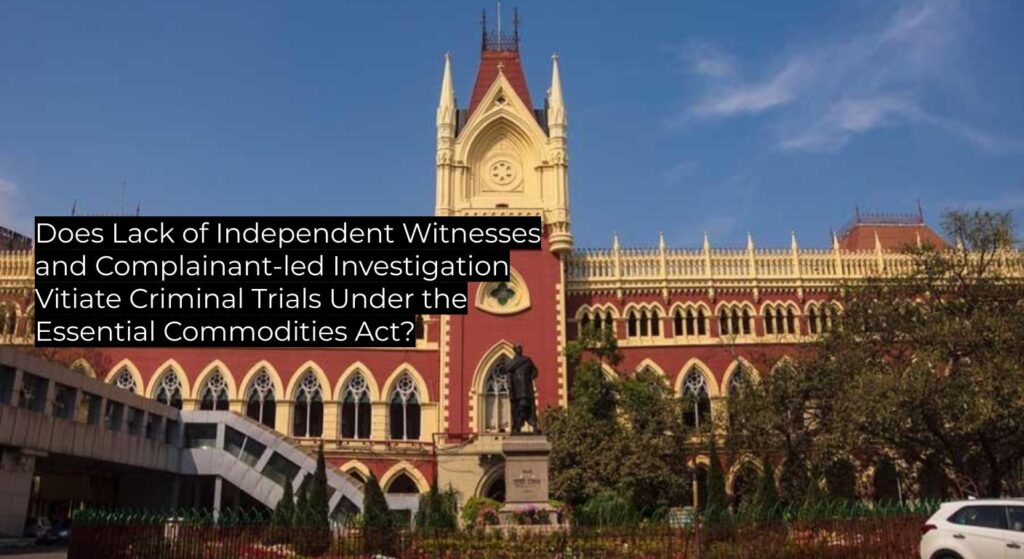 The Court held that where the complainant is also the investigating officer and no independent witnesses are examined in support of seizure, serious prejudice is caused to the accused, and the prosecution case may fail for lack of fair and impartial investigation. The judgment follows the approach in Mukesh Singh (2020) and distinguishes Mohan Lal (2018), applying the test of prejudice and fairness on the facts. This decision is binding authority within the Calcutta jurisdiction and serves as persuasive authority elsewhere, particularly in prosecution under the Essential Commodities Act and similar statutes.