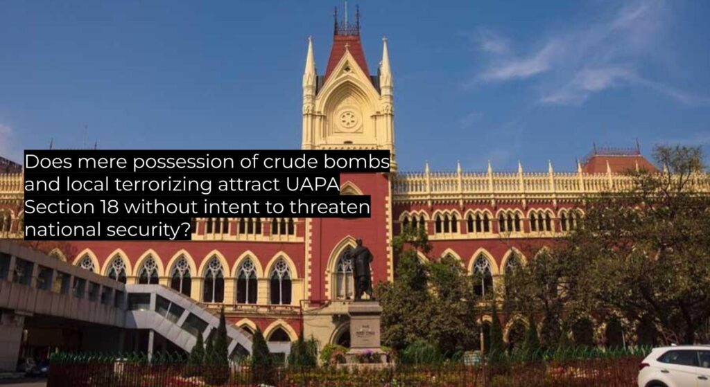 | Question of Law | Whether Section 18 UAPA can be applied for mere possession of crude bombs and terrorizing villagers absent intent to threaten the unity, integrity, security (including economic security) or sovereignty of India as defined in Section 15? |