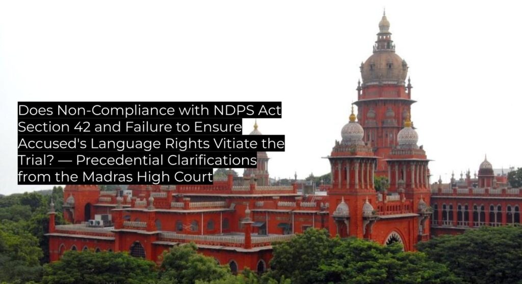 Madras High Court affirms that failure to strictly comply with Section 42 of the NDPS Act, and to ensure procedural fairness when the accused do not understand the trial language, invalidates conviction and vitiates the trial. This judgment reinforces and applies binding Supreme Court precedent, serving as a binding authority for subordinate courts and persuasive value for other High Courts on compliance with statutory and linguistic safeguards in criminal trials under the NDPS Act.
