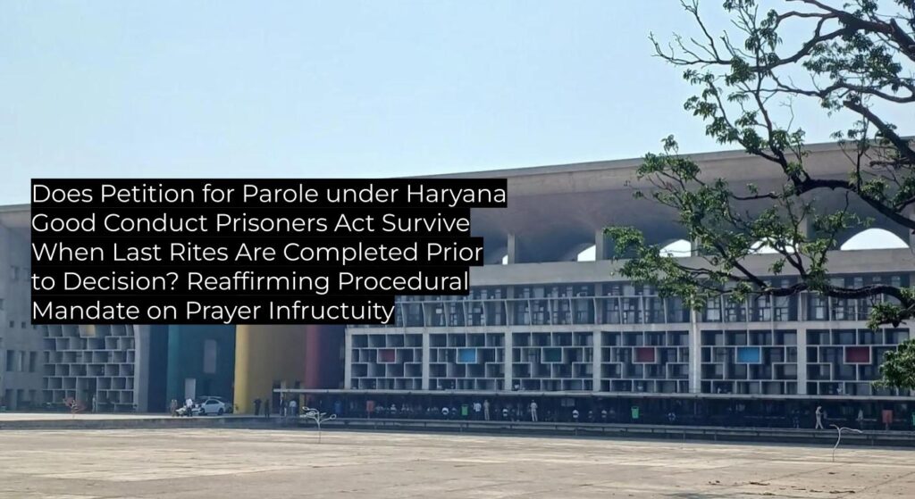 - Reconfirms that parole petitions under Article 226/Act for time-bound events (such as last rites) become infructuous if the event concludes before the hearing.