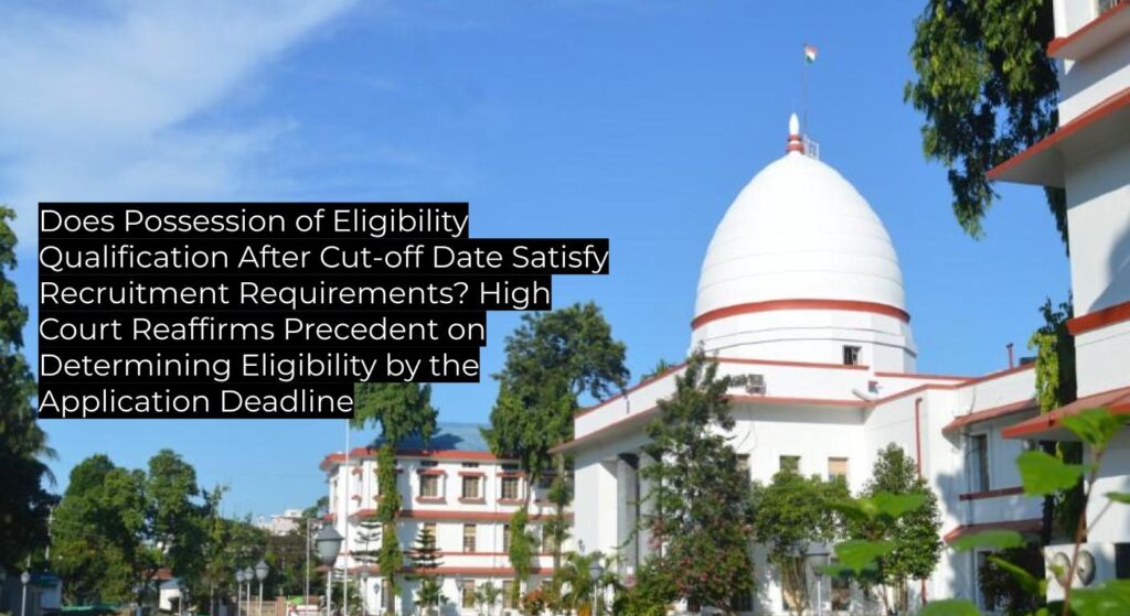 The court examined the recruitment notification, which stipulated a cut-off date for eligibility (20.11.2024) and did not make provision for post-submission acquisition of qualifications. The court interpreted this requirement strictly, following the Supreme Court’s consistent stance that eligibility for recruitment is to be reckoned as of the prescribed cut-off, unless recruitment rules say otherwise. No statutory flexibility was identified in the present rules or notification.