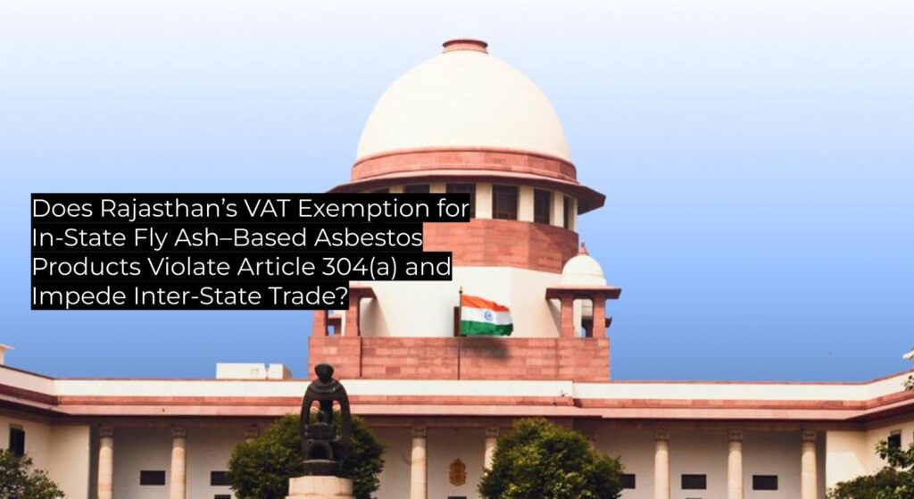 The State of Rajasthan issued a sequence of notifications (2000–2010) under its Sales Tax and VAT Acts to exempt from tax asbestos cement sheets and bricks manufactured in-State with ≥25% fly ash. The critical notification dated 09.03.2007 confined exemption to units commencing production by 31.12.2006, valid until 23.01.2010. Manufacturers based outside Rajasthan challenged it as discriminatory under Articles 301–304(a). The High Court upheld the exemption by applying Video Electronics. The petitioners appealed to the Supreme Court.