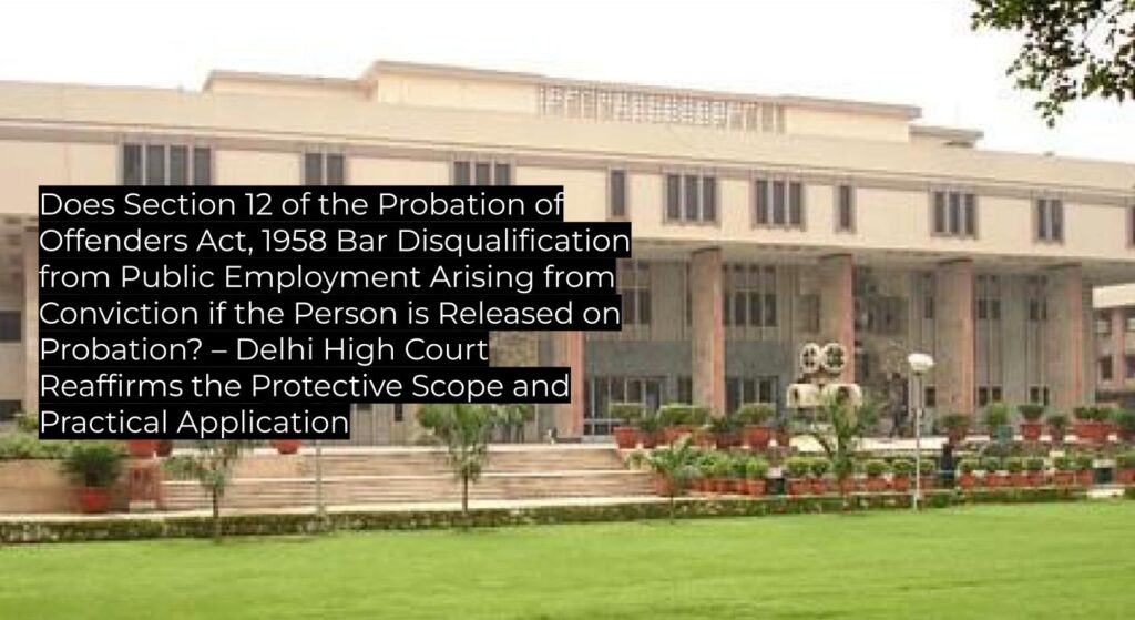 Delhi High Court holds that Section 12 of the Probation of Offenders Act, 1958 shields candidates convicted but released on probation from disqualification for government employment under service regulations, provided the post is not of a law enforcement/security nature. Judgment affirms and clarifies past Division Bench holdings; serves as binding authority for subordinate courts and persuasive guidance for service law matters.