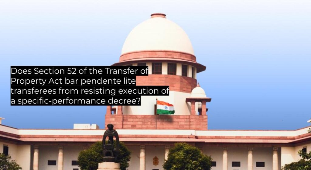 - Confirms that pendente lite transferees are subservient to a decree for specific performance and cannot resist execution under lis pendens.
