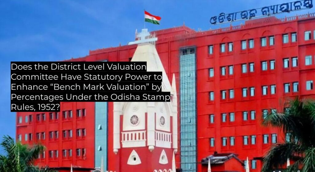 | Ratio Decidendi | The Odisha Stamp Rules, 1952 vest in the DLVC only the power to fix or revise bench mark valuation for two-year periods under Rules 40 and 41. Enhancement by percentage is a distinct power of the Collector under Rule 40(2). |