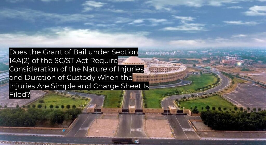 - Reaffirms that the nature of injuries (simple versus grievous) is a significant factor in bail considerations under the SC/ST Act.