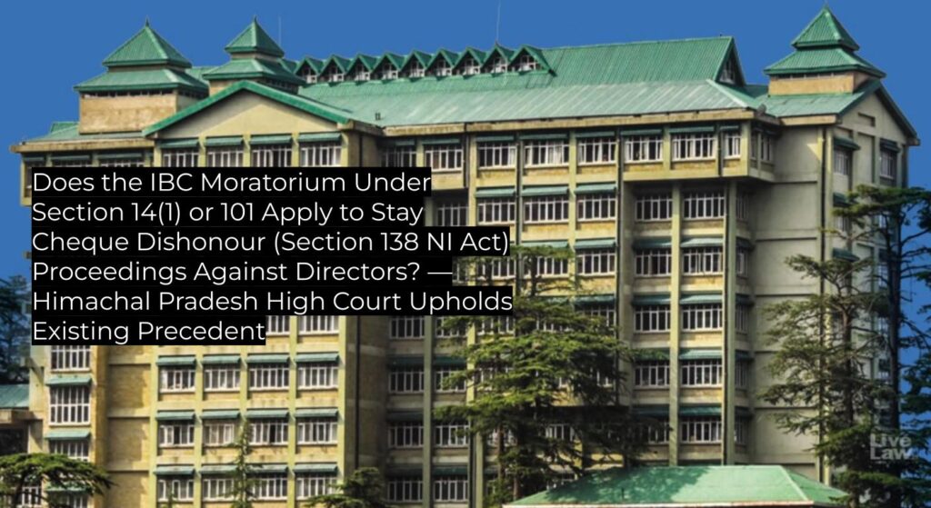 - Reaffirms that IBC moratorium (Sections 14/101) applies only to corporate debtors; directors/natural persons remain prosecutable under Section 138 NI Act.