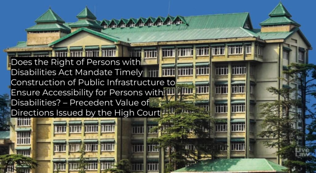 Does the Right of Persons with Disabilities Act Mandate Timely Construction of Public Infrastructure to Ensure Accessibility for Persons with Disabilities? – Precedent Value of Directions Issued by the High Court