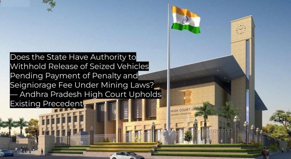 - Relying on the Division Bench’s ruling in Naganath v. State of Andhra Pradesh (2021 (2) ALD 535), it was clarified that mining rules do not require payment of penalty and seigniorage fee as a precondition for release of the vehicle.