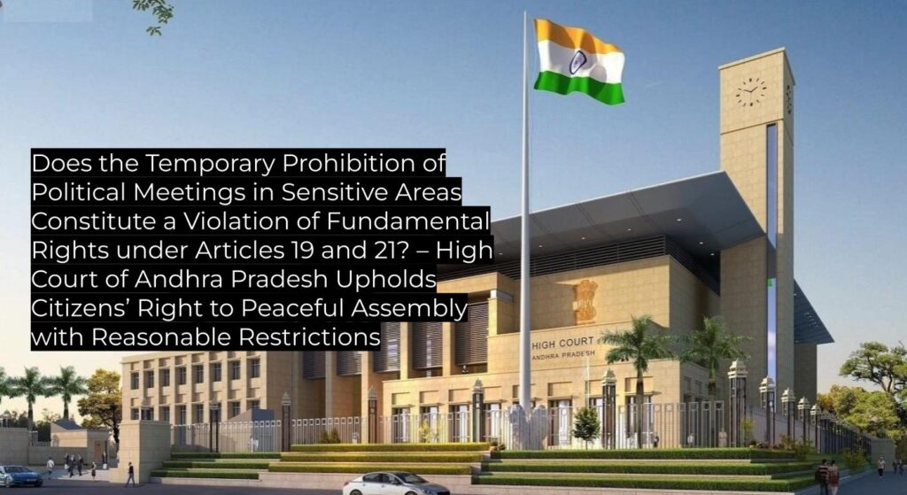 The High Court reaffirms that the State cannot impose a blanket prohibition on peaceful assembly but may enforce reasonable restrictions in the interest of public order. The judgment draws from established Supreme Court judgments, clarifying the balance between the right to protest and maintenance of law and order, and is binding authority for future similar disputes within Andhra Pradesh.