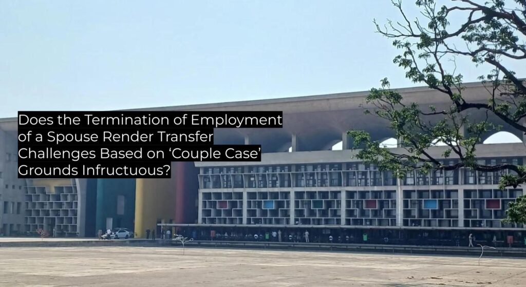 Where a government employee’s challenge to transfer is premised on ‘couple case’ status, termination of the spouse’s employment renders such challenge infructuous—Punjab & Haryana High Court affirms existing approach; binding authority for service matters arising from changed circumstances post-filing.