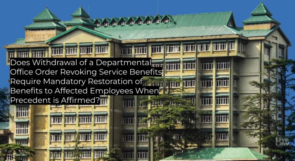 The High Court of Himachal Pradesh has directed restoration of withdrawn service benefits following the withdrawal of an impugned departmental order and reaffirmation of prior court judgments. The decision affirms established precedent regarding the implementation of prior analogical judgments and clarifies compliance obligations for the Government and its departments, serving as binding authority for all subordinate courts within Himachal Pradesh.