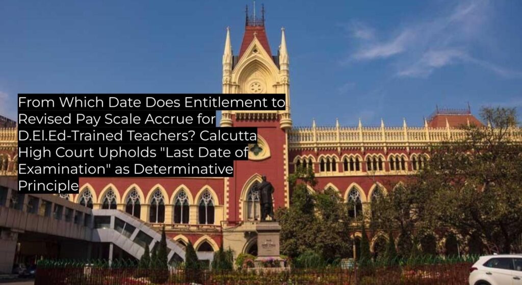 The Calcutta High Court reconfirms that entitlement to the “A” category pay scale for D.El.Ed.-qualified teachers accrues from the day following the last date of the examination, not from the date of publication of results. This judgment upholds existing coordinate bench precedent and is binding on subordinate courts within West Bengal, serving as persuasive authority elsewhere.